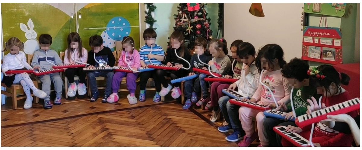 Έτσι τα παιδιά παίζουν μουσικοκινητικά παιχνίδια, έρχονται σε επαφή με πρώτες μουσικές έννοιες, τραγουδούν ως χορωδία και σχηματίζουν ορχήστρες κρουστών και μελόντικας. Κατά τη διάρκεια του σχολικού έτους, έχουν την ευκαιρία να αισθανθούν μικροί μουσικοί, καθώς συμμετέχουν σε μουσικές γιορτές και εκδηλώσεις, παρουσιάζοντας σε κοινό όσα έχουν μάθει! Παράλληλα με τα ομαδικά μαθήματα, τα παιδιά που το επιθυμούν, έχουν την δυνατότητα να κάνουν την πρώτη τους επαφή με την εκμάθηση ενός μουσικού οργάνου (πιάνο, κιθάρα κλασική/ηλεκτρική, τουμπελέκι, φλογέρα) σε ατομικό μάθημα.